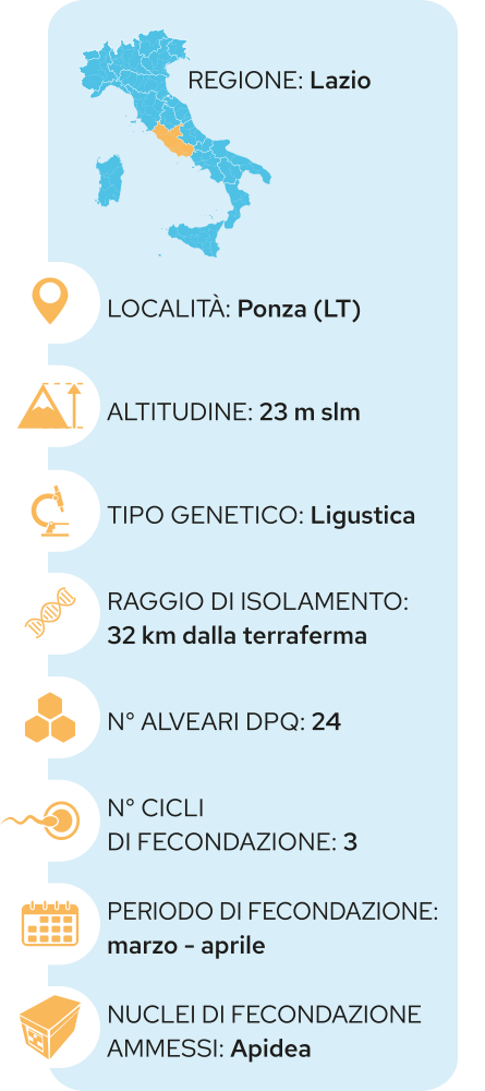L’idea di sviluppare un’ADA sull’Isola di Ponza nasce dalla volontà congiunta di due giovani apicoltori associati ad AISSA: un apicoltore della provincia di Latina, attivo nell’allevamento e nella selezione di Ligustica, e un apicoltore stanziale residente sull’Isola di Ponza, interessato alla possibilità di collaborare ad un progetto di selezione e conservazione.